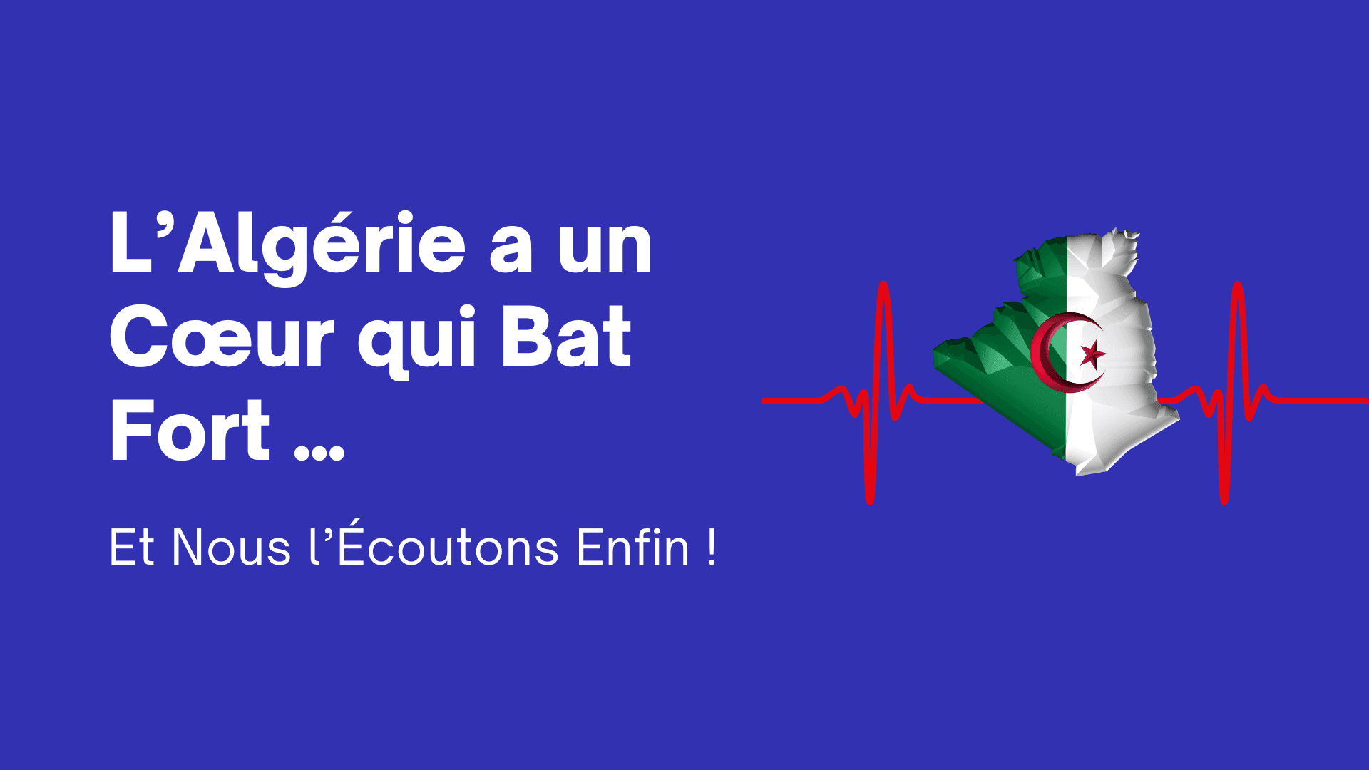 The bracelet is designed to track vital signs, detect abnormalities, and provide real-time insights to users and healthcare professionals. The slogan, "L'Algérie a un cœur qui bat fort... Et nous l'écoutons enfin!